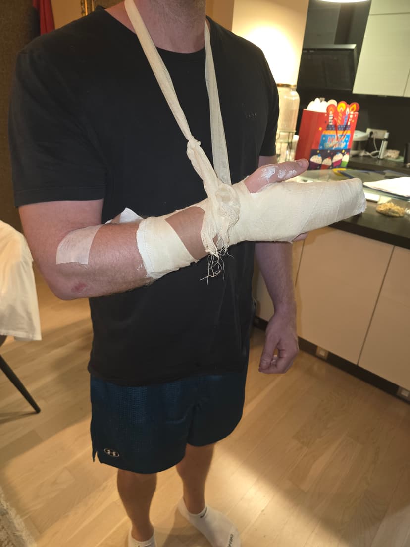 Milan Pejčić iz Novog Sada pretučen je bejzbol palicom od strane maskiranih huligana u Stražilovskoj ulici dok je sa suprugom i psom pratio protestnu kolonu.
