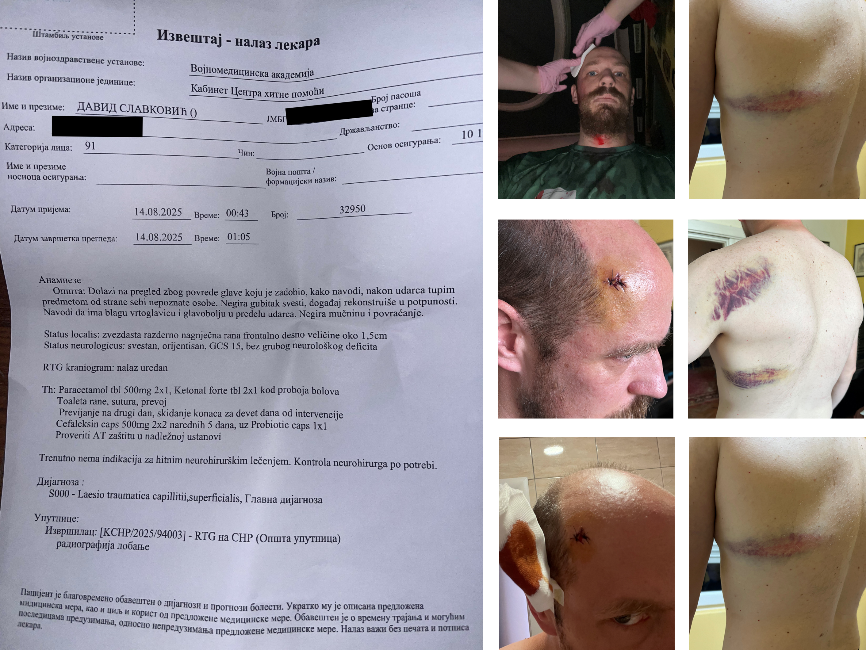 Njegovo svedočenje i materijalni dokazi ukazuju na neopravdanu i brutalnu upotrebu sile prema građaninu koji nije pružao otpor, već je samo pokušavao da dokumentuje postupanje policije. Ovaj slučaj dodatno osvetljava atmosferu nasilja i nekažnjivosti koja je pratila intervencije Žandarmerije tokom protesta u Beogradu krajem avgusta 2025. godine.