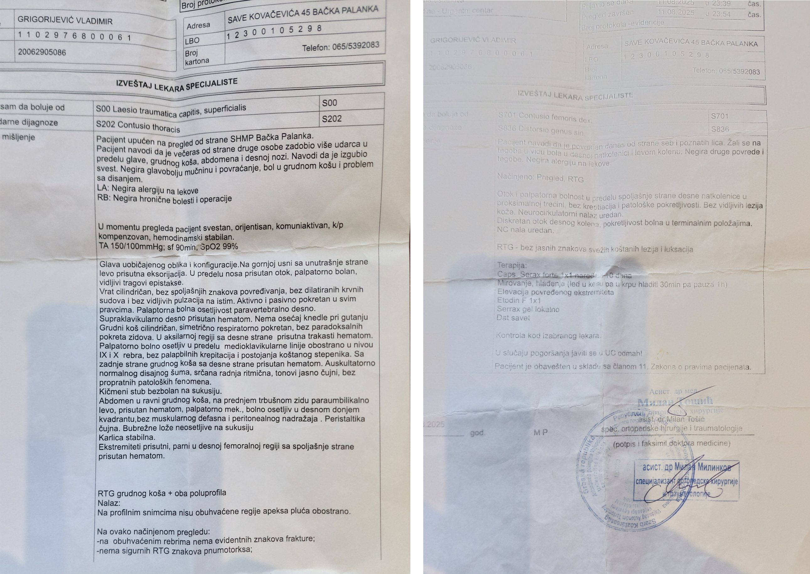 Dana 11. avgusta 2025. godine, u Bačkoj Palanci, Vladimir Grigorijević je, prolazeći ulicom u kojoj se nalaze prostorije Srpske napredne stranke, napadnut od strane više članova SNS-a.
