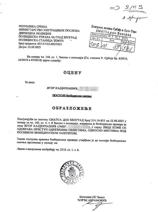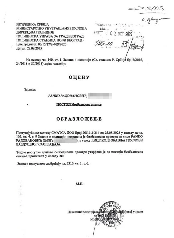 Troje sindikalnih aktivista i dugogodišnjih kontrolora letenja u Agenciji za kontrolu letenja Srbije i Crne Gore (SMATSA) dobilo je otkaze neposredno nakon završetka štrajka sindikata krajem septembra 2025. godine. Otkazi su usledili nakon vanredne bezbednosne provere koju je, na zahtev rukovodstva SMATSA, sproveo MUP, uz negativna mišljenja Bezbednosno-informativne agencije (BIA), bez ikakvog konkretnog obrazloženja.