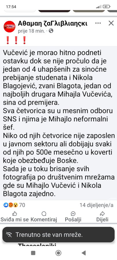 Policijski i sudski odgovor: Policija je brzo identifikovala i uhapsila četvoricu osumnjičenih (navodno povezanih sa SNS-om). Osuđeni su na pritvor do 27. februara 2025., optuženi za "nasilničko ponašanje" i "teške telesne povrede". Više javno tužilaštvo u Novom Sadu preuzelo je slučaj, a proces je još u toku (do septembra 2025. nema konačne presude).