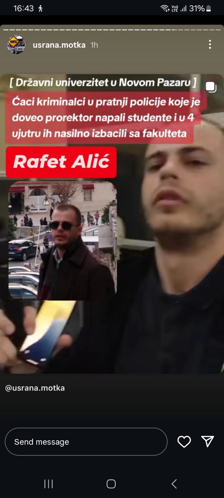 Grupa od dvadesetak maskiranih osoba upala je u zgradu Državnog univerziteta u Novom Pazaru (DUNP) i silom izvela studente koji su blokirali fakultet (Insajder).